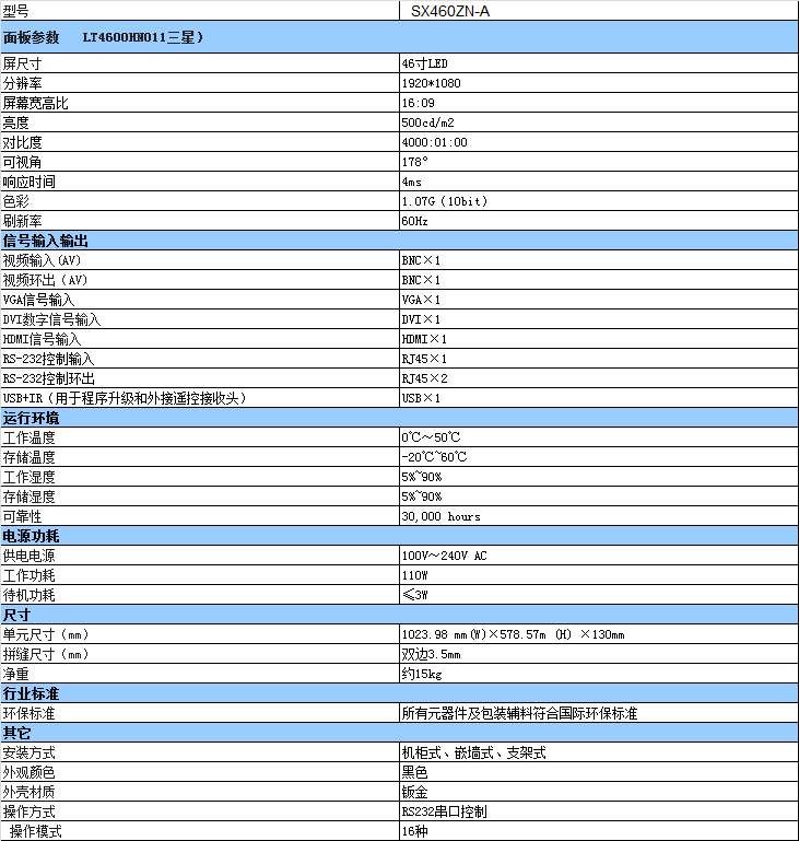 46寸液晶拼接屏規(guī)格參數(shù)大全