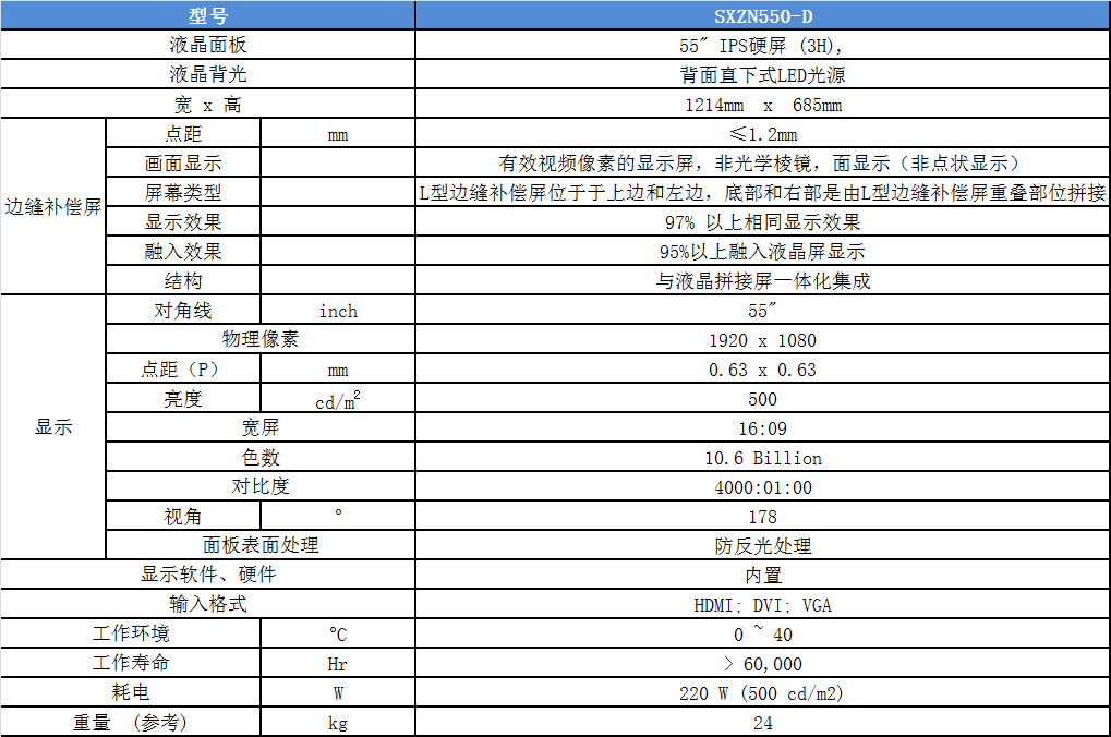 無縫液晶拼接屏SXZN550-D技術(shù)參數(shù)表: